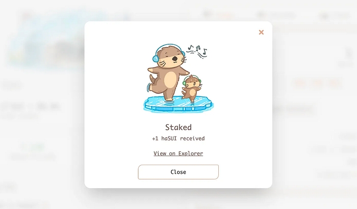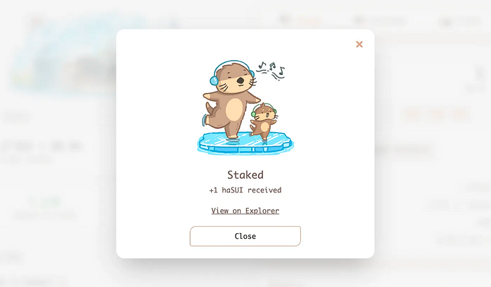 4. Confirm the transaction using your wallet. Your wallet will now contain haSUI representing your staked deposit.
