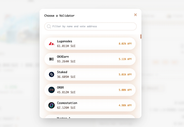 ‘Manual’ mode allows users to stake SUI/staked SUI in their preferred validators with different levels of APY from the validator list.